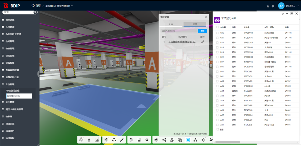现场临时停车及长期租赁停车车位信息量大,管理困难,通过BIM模型结合可以快速进行车位情况查询,了解历史登记记录,对及时提醒车主续费等管理工作提供准确的依据。