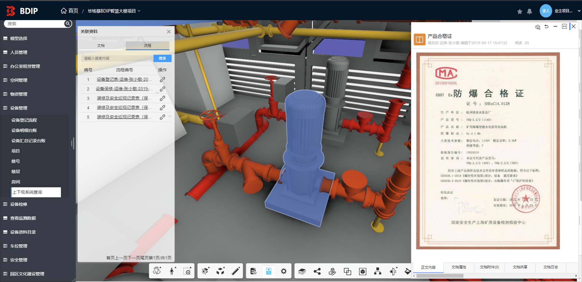 空间划拨登记后,与BIM模型关联辅助定位,并可以直接查看调阅各种相关资料及合同文件,实景照片,并设定提醒,进行空间精细管理。