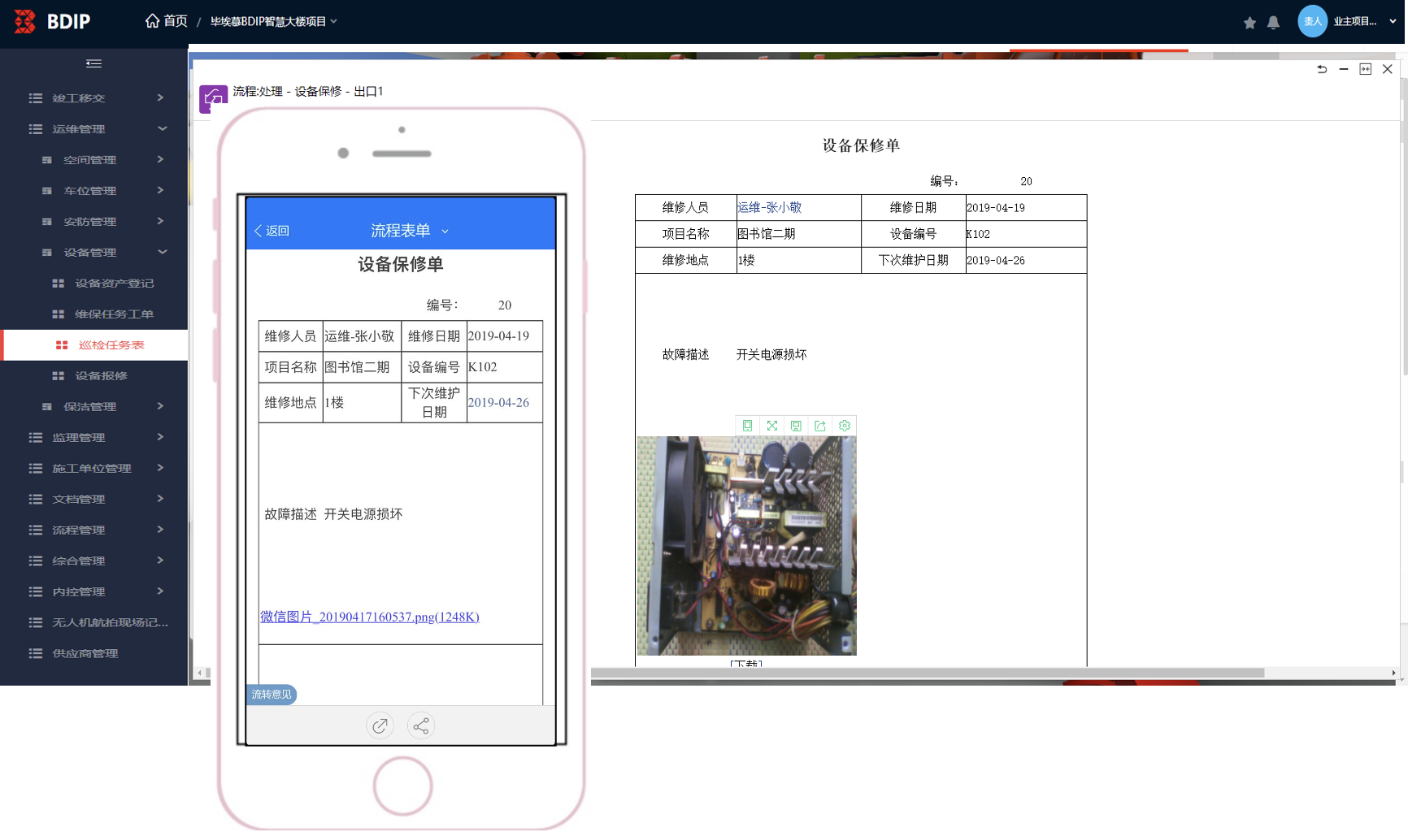 通过预先对不同设备设置巡检计划,可以科学高效的确保工作人员每天按照最小工作量绝不遗漏的将设备进行巡检,结合移动端应用即可现场检查现场填报结果。对于有问题的设备,随时发起报修管理流程,通过各级派工定位到人跟踪解决过程和最终结果,形成历史记录。